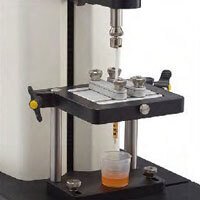 | 用于測試在0°,45°和90°角從一個密封容器上將蓋子揭開時的粘附強度。 | 用于固定小樣品進(jìn)行穿刺試驗,適用于果凍豆、口香糖等。要求使用夾具基臺。 |